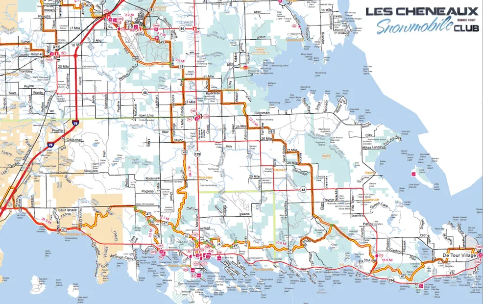 The MSA publishes the "Michigan Snowmobile News" magazine - to learn more visit the MSA website and connect with them on Facebook. The EUPSC publishes a comprehensive trail map that shows all State sanctioned snowmobile trails in the EUP as well as other helpful information. The maps can be found throughout the EUP at many businesses.